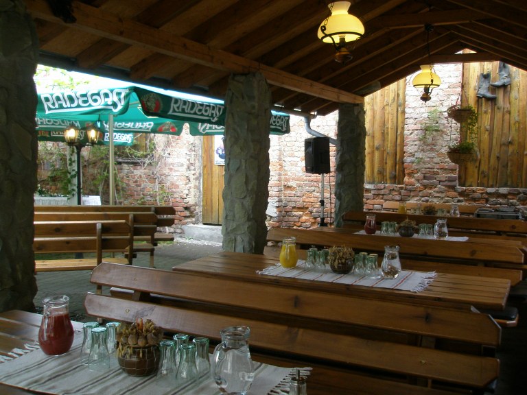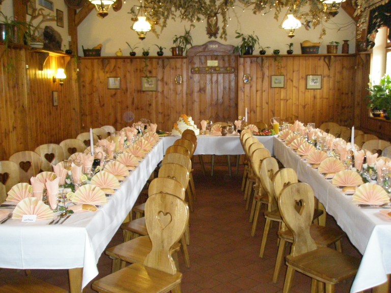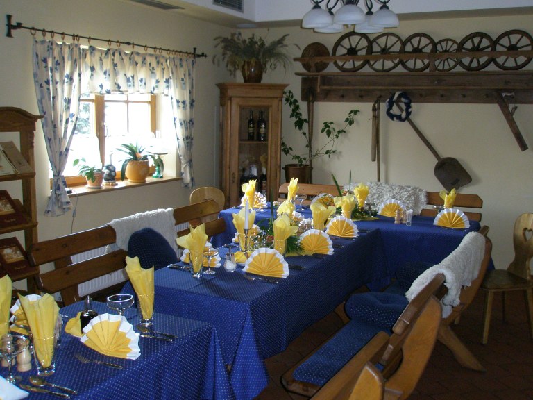 Resturace v bavorském stylu, kapacita 100 míst, restaurace je klimatizovaná. Kouzelná letní zahrádka ve dvoře, kapacita 80 míst.